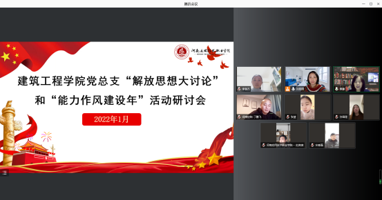 为进一步解放思想、抢抓机遇、深化改革、务实重干,以高度的思想自觉和行动自觉全面推进公司高质量发展,根据公司《best365足球官网“能力作风建设年”活动实施方案》的工作进程安排,2022年1月23日—25日best365足球官网辅导员、工程管理教研室、建筑装饰设计教研室、建筑工程技术教研室通过线上会议分别召开解放思想大讨论暨“能力作风建设年”活动研讨会。会议由党总支书记马春燕主持。