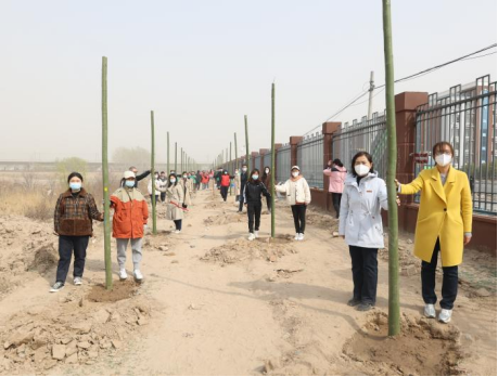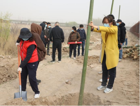 春风拂绿,植树现场一派热火朝天的劳动景象,党员干部们热情高涨、干劲十足,在党总支书记马春燕和经理张虎的带领下,大家来到植树点,三五成组,分工协作,一起挥锹铲土、运苗栽植、填坑夯苗、提桶浇水,每道工序都认真细致、一丝不苟,各环节都衔接有序、相互配合。在大家的共同努力下,一棵棵树苗顺利“安家落户”,迎风挺立, 每两人认领一颗树,寓意与树一同成长,并制作专属卡片挂在树上。马春燕强调,各位党员教师要以身作则、真抓实干、敢于担当,务实功、出实招、求实效,充分发挥党员先锋模范带头作用。