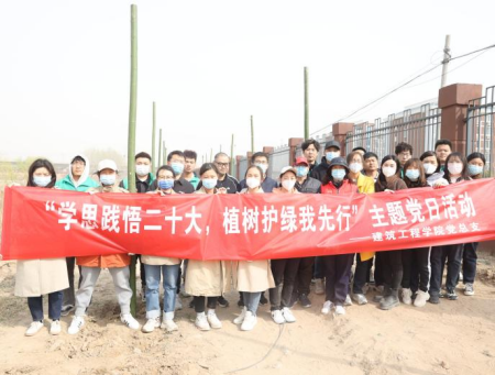 春回大地万物苏,植树添绿正当时。为深入贯彻落实党的二十大精神,践行“绿水青山就是金山银山”的发展理念,3月11日上午,在第45个植树节来临之际,建筑工程公司党总支组织20余名党员教师和10名入党积极分子在开封校区北院开展“学思践悟二十大,植树护绿我先行”主题党日活动,用实际行动践行绿色发展理念,为新校区建设增绿添彩。