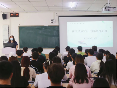 为深入学习贯彻习近平总书记关于注重家庭家教家风建设的重要论述,进一步推进清廉公司建设,教育引导员工坚定理想信念,树立清廉意识。2023年5月19日中午,best365足球官网学工党支部书记马春燕以“树立清廉家风,筑牢底线思维”为主题在郑州校区SC304教室讲授专题党课,2022级全体入党积极分子参加。