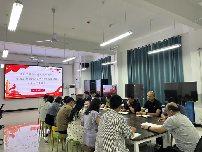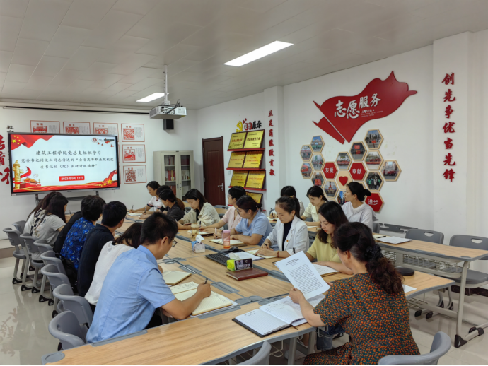 2023年9月12日下午,建筑工程公司党总支在郑州校区办公楼516党员活动室(开封校区C104)组织开展政治理论学习活动。本次学习采取东西校区视频连线,线上、线下相结合的方式,会议由建筑工程公司党总支书记马春燕主持,经理张虎及全体教职工参加。