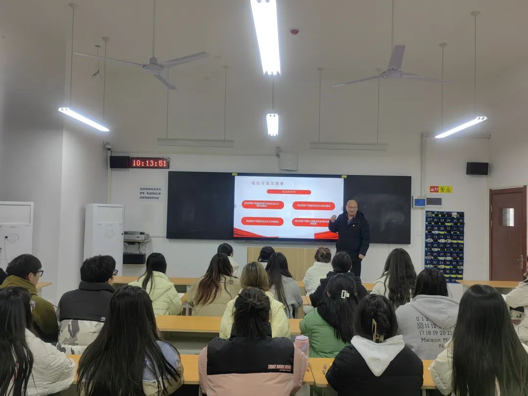 为弘扬宪法精神,树立法治信仰,深入开展普法宣传教育,2023年12月1日,建筑工程公司党总支书记张虎为同学们讲授题为“弘扬宪法精神,维护宪法权威”主题思政课。