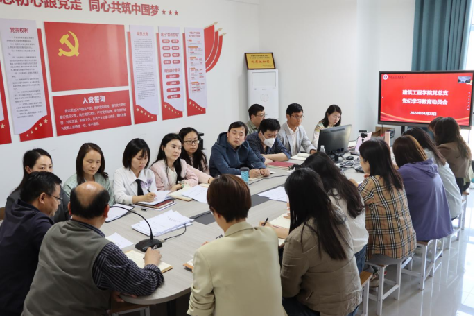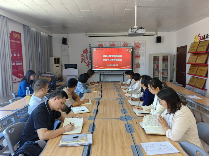 为深入学习贯彻习近平总书记关于党纪学习教育的重要讲话和重要指示精神,认真贯彻落实公司党委关于开展党纪学习教育的相关部署,2024年4月24日下午,建筑工程公司党总支在郑州校区办公楼516党员活动室(开封校区C202)组织召开党纪学习教育动员会暨第一次集中学习。本次会议采取东西校区视频连线,线上、线下相结合的方式,会议由建筑工程公司党总支书记张虎主持,经理李勇及全体教师党员参加。