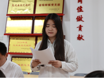 正式党员表决支部大会决议,刘亚娟宣读大会决议。