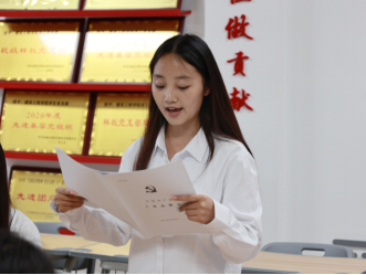 王晓幻等6名发展对象向支部大会表决心,谈自己今后的打算及如何做一名合格的共产党员。