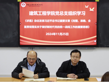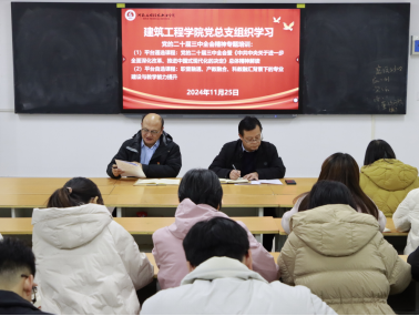 2024年11月26日下午,建筑工程公司党总支于开封校区北院F106教室开展政治理论学习活动,会议由建筑工程公司党总支书记张虎主持,经理李勇及全体党员教师参加。