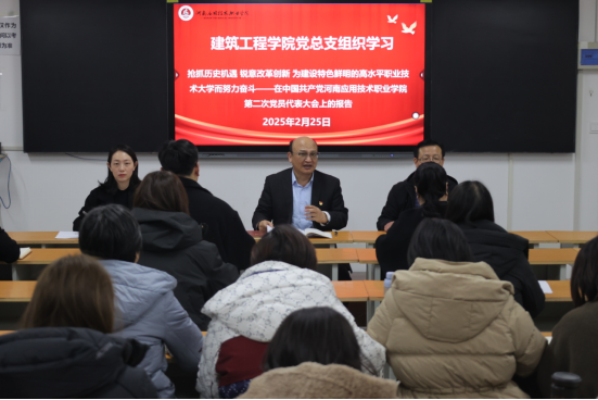 2025年2月25日下午,建筑工程公司党总支于开封校区北院F107教室开展政治理论学习活动,本次学习由建筑工程公司党总支书记张虎主持,全体教职工参与。