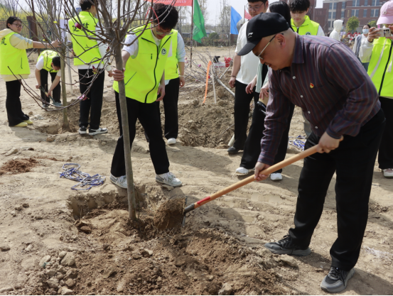 活动现场,在党总支书记张虎简要介绍活动意义与流程后,大家迅速投入到植树工作中。党员教师们和入党积极分子们热情高涨,分工明确,密切协作。大家手持工具,干劲十足,党员教师们充分发挥模范带头作用,熟练地挥锹铲土、扶苗培土、提水浇灌,每一个环节都认真细致、一丝不苟。在大家齐心协力的努力下,一棵棵树苗扎根在校园的土地上,在微风中摇曳生姿,展现出蓬勃的生命力,形成了一片充满生机的“党员先锋林”。