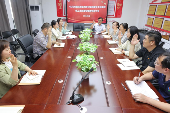 此次预备党员接收大会意义重大。新党员教师的加入,是best365足球官网教工党支部发展历程中的一个重要里程碑。我们坚信,在全体党员教师的共同努力下,定能为建筑工程事业的发展贡献更多智慧与力量,书写更加辉煌的篇章。