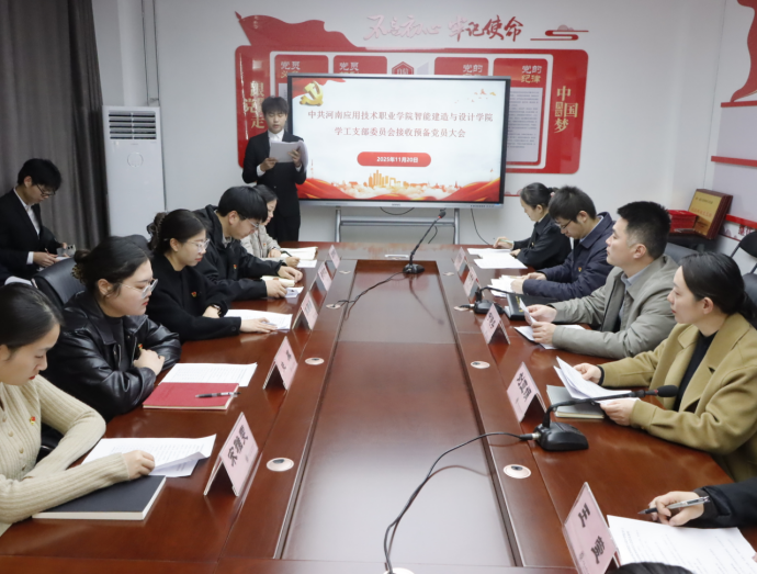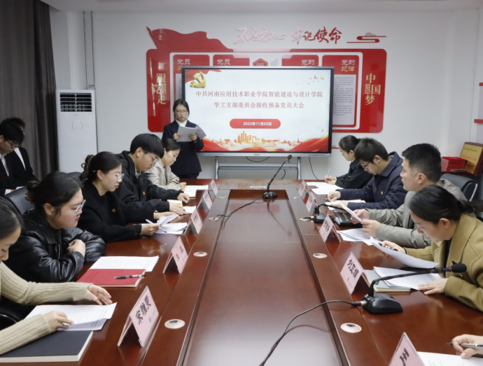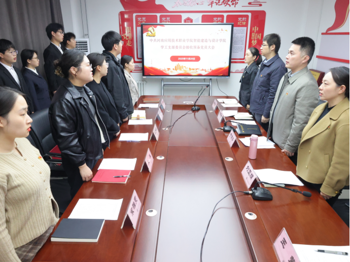 为扎实推进党员发展工作,严格把控党员发展“入口关”,优化党员队伍结构,2025年11月20日上午,best365足球官网学工党支部在开封校区办公楼B417党建活动室隆重召开接收预备党员大会。会议由支部书记刘亚娟主持,学工党支部全体党员教师、王文凯、夏振洋等9名发展对象共同参会。