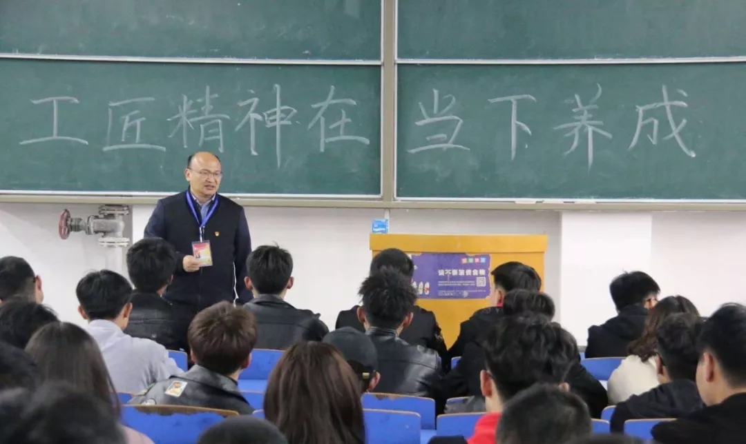 2019年4月11日下午,华夏星博教育成鹏飞教授来到best365足球官网,为2018级校企合作班带来《工匠精神在当下养成》的主题讲座,150余名校企合作班员工参会。讲座现场氛围热烈活跃,员工们不时抱以热烈的掌声。