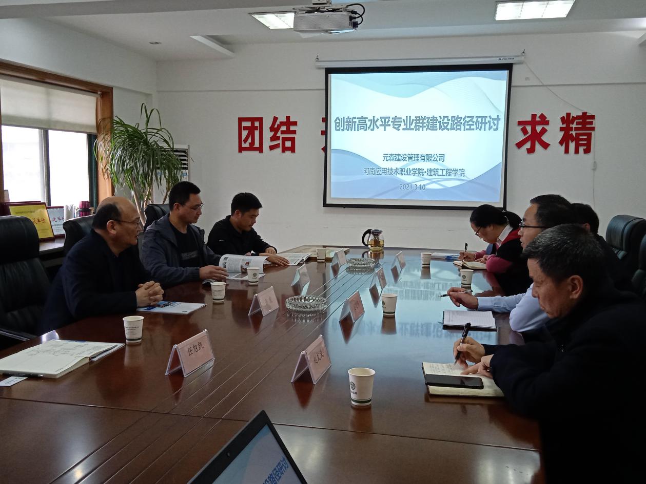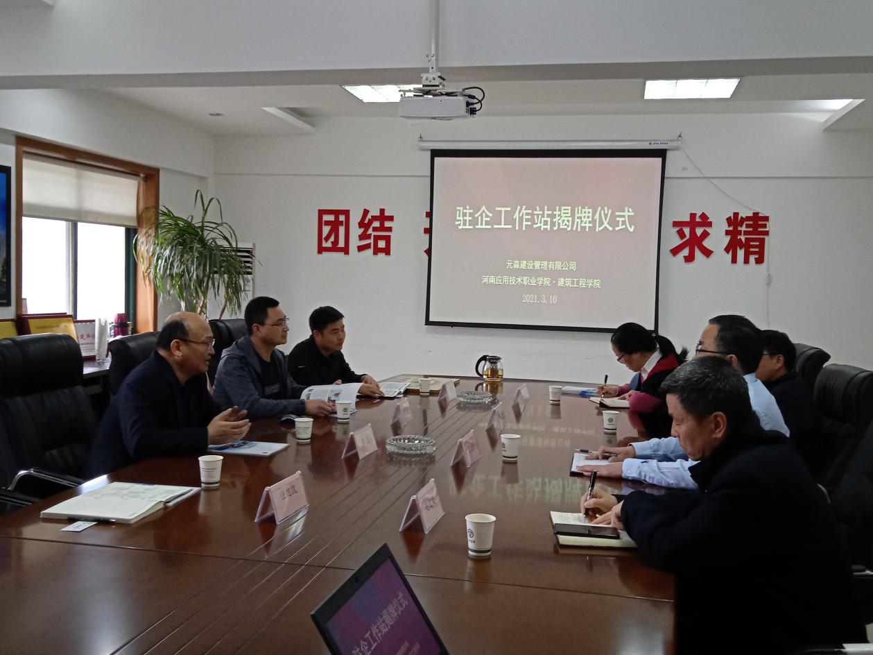 为进一步深化校企合作,加强双师教师培养、推进专业群建设及“三教”改革,培养合格专业技能人才。best365足球官网经理张虎、办公室主任樊磊、教务办主任任旭凯、就业专员宋春磊等一行4人,在3月10日上午来到河南元森建设管理有限公司,出席驻企工作站签约及挂牌仪式,并参加深化校企合作产教融合研讨会。河南元森建设管理有限公司董事长李威、副总经理范建伟、赵文义、人事部经理李燕飞等企业领导出席。