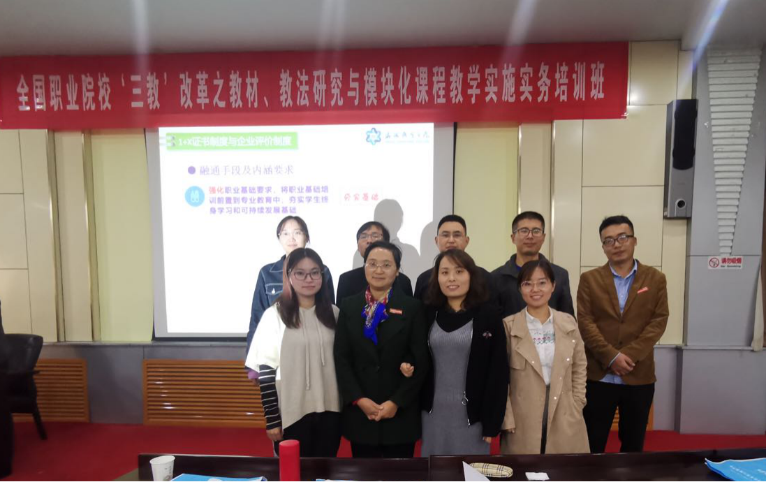 在此背景下,公司派出王宏、樊磊、任旭凯等9位教师10.26-10.27到华北水利水电大学参加由中国管理科学研究院职业资格认证中心主办的“全国职业院校‘三教’改革之教材、教法研究与模块化课程教学实施实务培训班”。主讲人威海职业公司王亚盛教授。