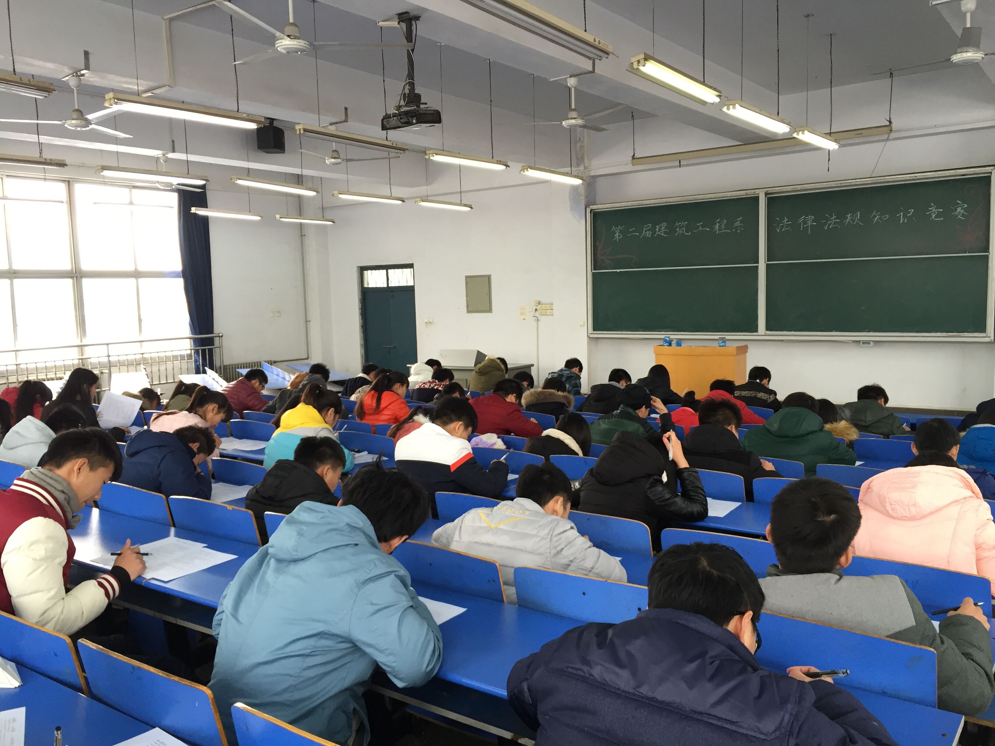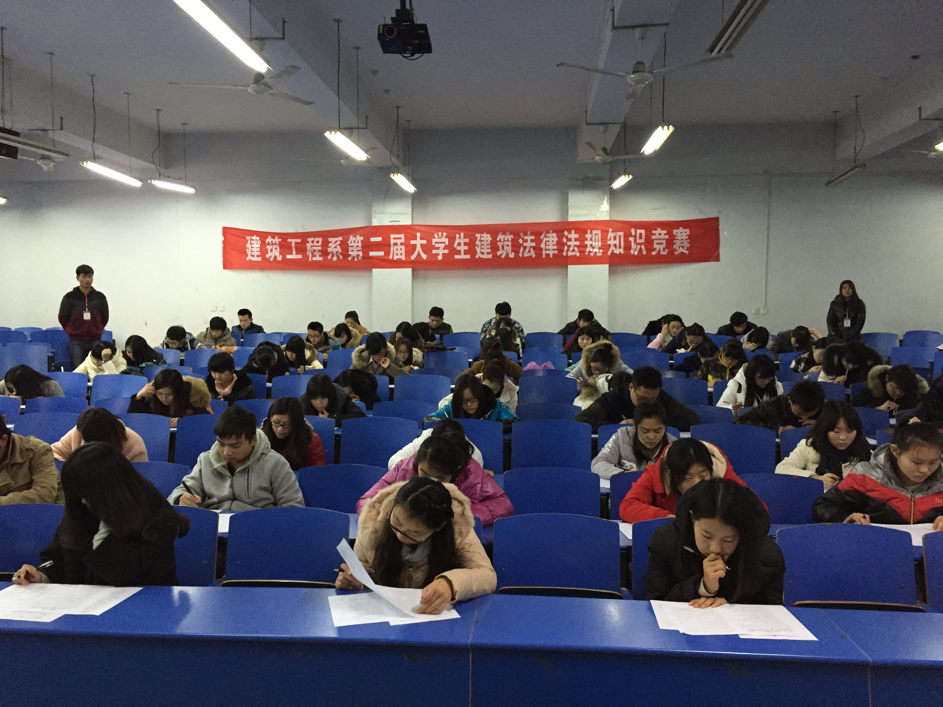为了提高我系建筑法律法规知识水平,进一步加深同学们对建筑系法律法规的深层认识,我系特于2015年11月24日举行了第二届老员工建筑法律法规知识竞赛,促进了我系的学风建设行径。