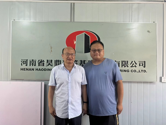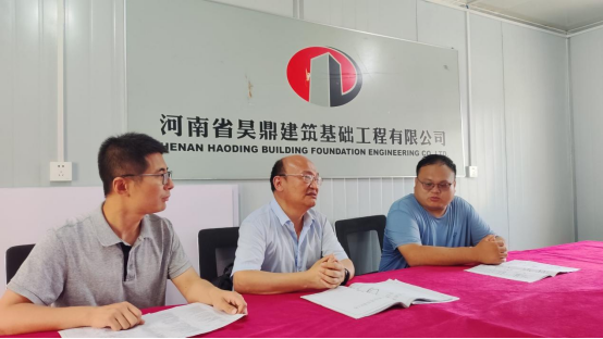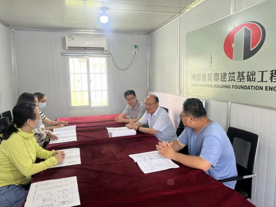 张虎经理来到本次教师暑期实践所在的建筑工地——河南省中医院高新区院区建设项目,与企业方代表河南省中医院高新区院区建设项目基坑工程项目经理邰书朝进行亲切座谈。邰经理分别介绍了公司项目开展情况、教师实践情况、人才需求情况等,对公司实践教师的表现给予了高度评价,指出企业在用工方面的迫切需求,希望在现有合作基础上进一步加大在科研创新、项目共建等方面的合作深度,达到教学相长的目的。
