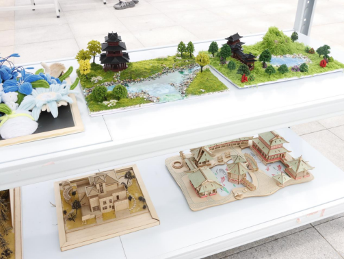 室内设计教研室通过手绘展示、模型展示、现场手工制作等多个环节,全方位展现了师生的精湛技艺与创新思维。模型展示区同样亮点十足,从单体模型到景观场景模型,每一件展品都经过了员工们的精心设计与制作。运用专业知识和技能,将设计图纸转化为立体的实物模型,通过对材料的选择、结构的搭建、细节的雕琢,来呈现方案的空间效果和艺术魅力。