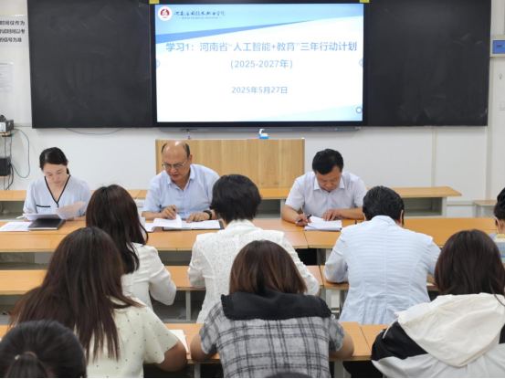 会上,李勇带领教师们深入学习了《河南省“人工智能 + 教育”三年行动计划(2025 - 2027年)》,鼓励教师们积极思考如何将人工智能技术与best365足球官网的专业教学深度融合。他还分享了一些前沿的教育技术应用案例,引导教师们探讨创新教学模式、提升教学效果的方法。
