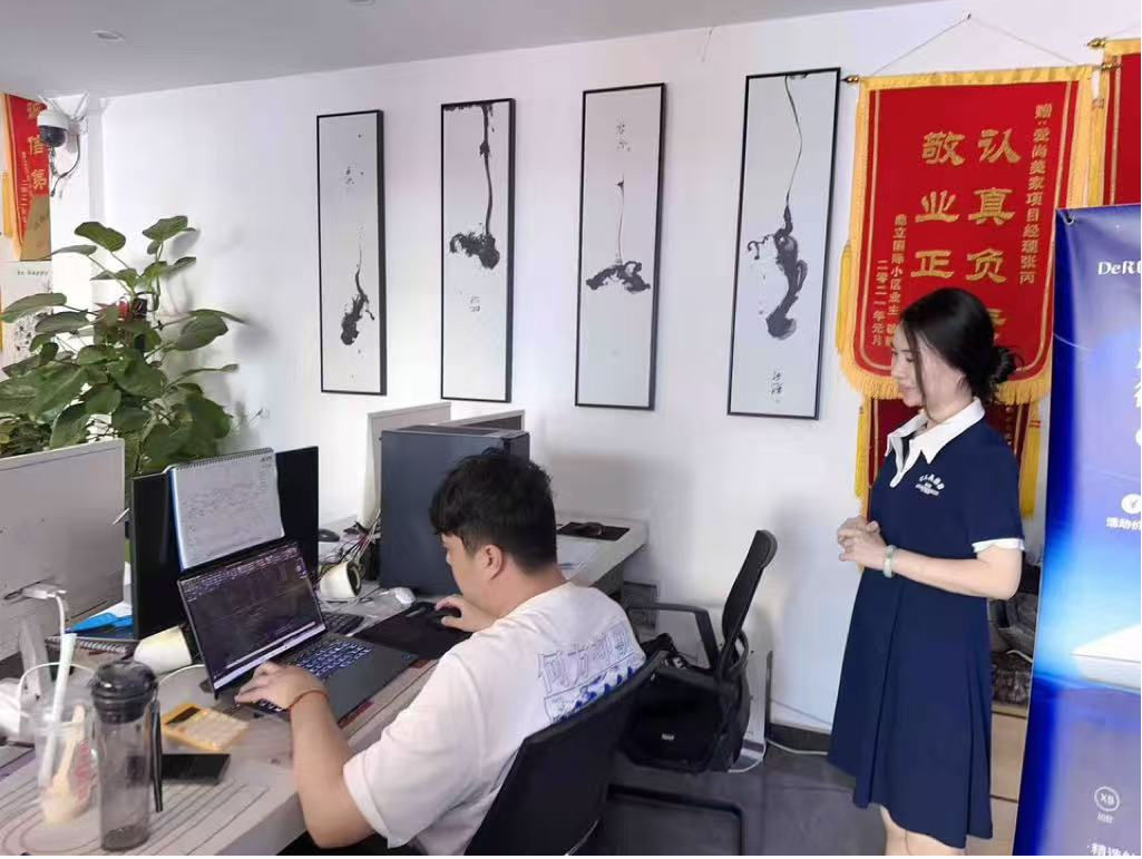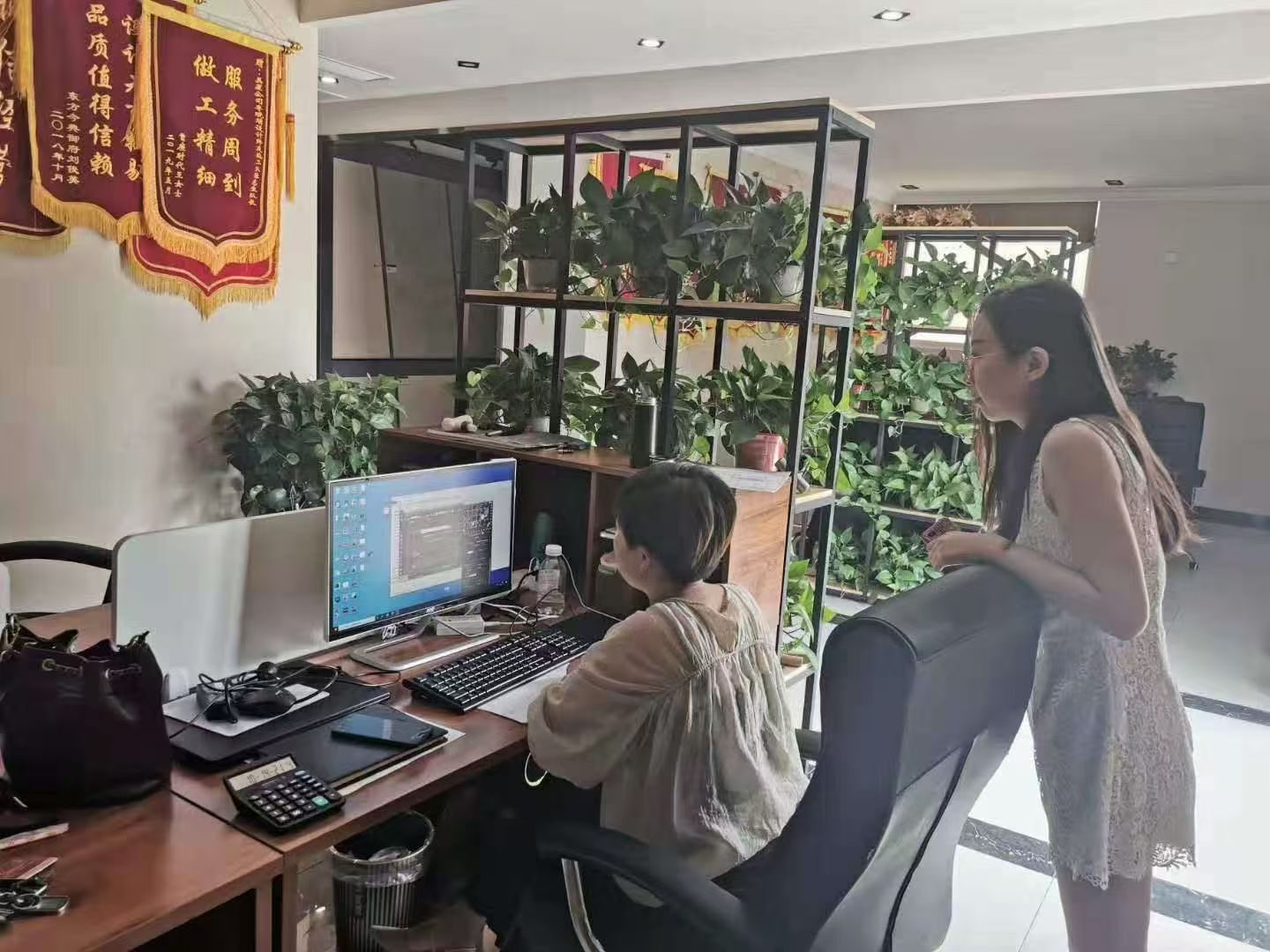 薛婵老师、郑航老师则在河南正广建设工程有限公司,关切询问室设2303班吕松哲、室设2304班许语晴两位设计师助理的交通、食宿、休息等生活问题,全面掌握员工实习以来的生活与工作状态。