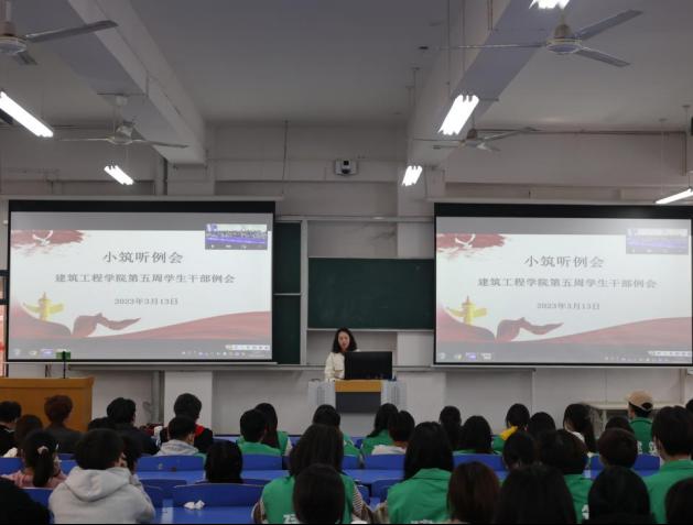 为提高员工干部积极性、主动性以及员工干部的综合素质,为员工提供更好的服务。2023年3月13日中午,best365足球官网在郑州校区B102教室召开了第五周员工干部例会(开封校区以视频形式在C101教室参加会议)。会议由建筑工程公司党总支副书记刘亚娟主持,辅导员李慧杰、宋春磊、李政、张慧以及员工会成员,各班班长、副班长和团支书参加此次会议。