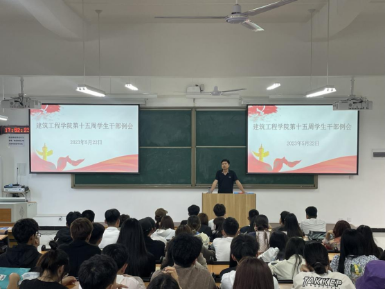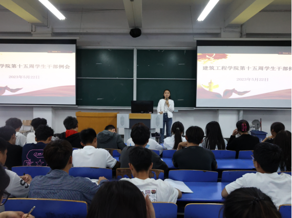 为提高员工干部积极性、主动性以及员工干部的综合素质,为员工提供更好的服务。2023年5月22日中午,best365足球官网在郑州校区B201教室召开了第十五周员工干部例会(开封校区以视频形式在C201教室参加会议)。会议由best365足球官网辅导员李慧杰主持,党总支副书记刘亚娟,辅导员宋春磊、李政、张慧以及员工会全体成员、各班班长和团支书参加此次会议。