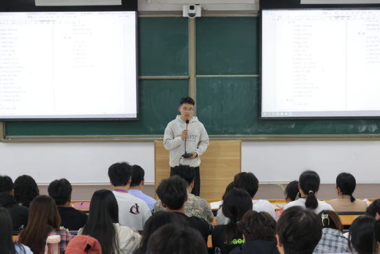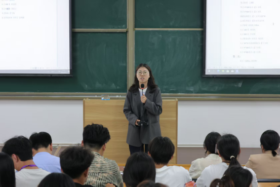 随后,王莹围绕团队凝聚力与员工会换届交接展开讲述。她指出凝聚力是团队高效运转的核心纽带,需要靠团结协作让集体智慧在服务同学与活动策划中充分释放。她谈到换届交接最重要的是责任意识、创新思维与团队精神的传承,呼吁23级干部做好“传帮带”,以经验助力成长,让24级同学更快融入,共同推动员工会工作再上新台阶。