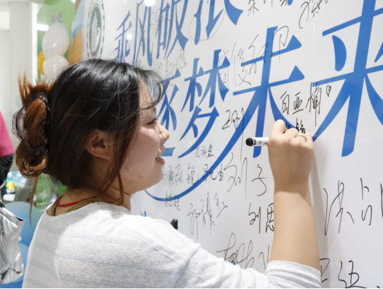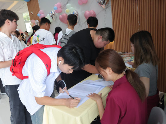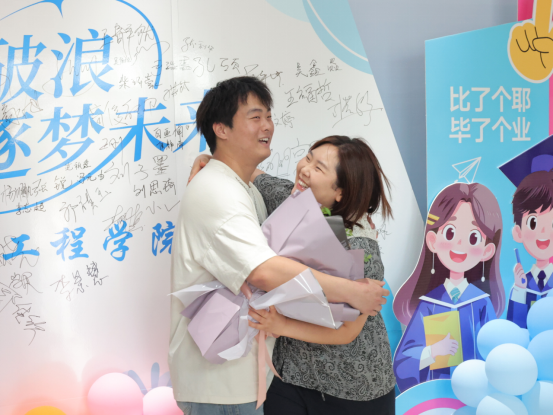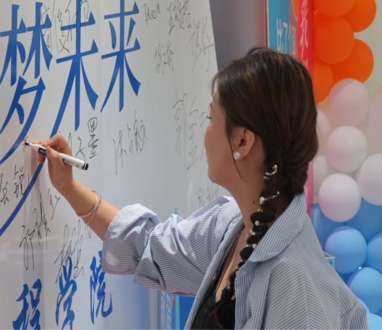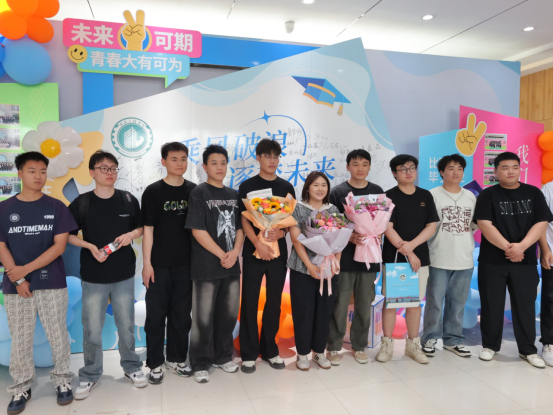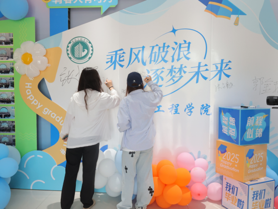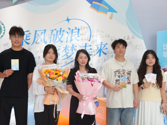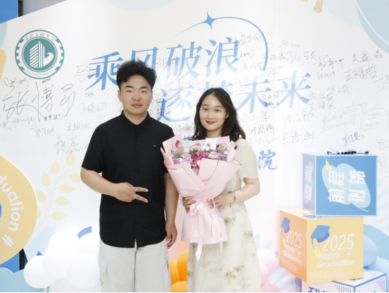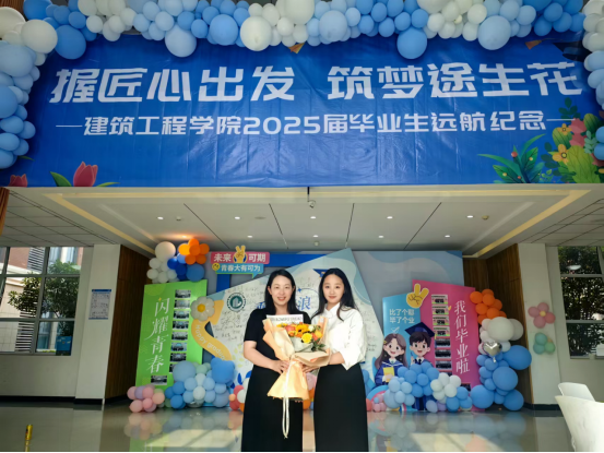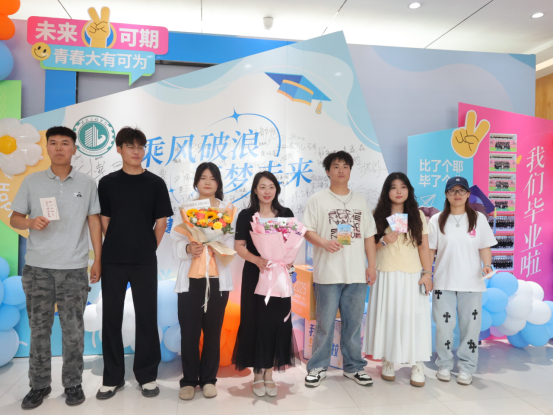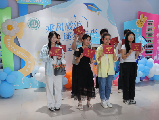 清晨的校园洋溢着热烈的氛围,公司党总支书记张虎和党总支副书记刘亚娟带领22级辅导员和志愿者们展开忙碌的准备工作。公司在教学楼精心布置了毕业主题展板,“握匠心出发 筑梦途生花”的标语格外醒目,毕业生们纷纷驻足拍照留念。现场,毕业生们有序排队,等待领取承载着多年努力与成长的毕业证书。在工作人员和志愿者的引导下,整个领取流程高效、规范,每位毕业生在拿到证书的瞬间,脸上都绽放出灿烂的笑容。