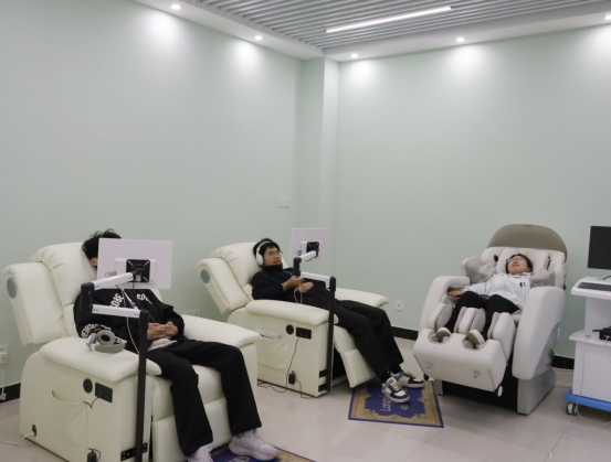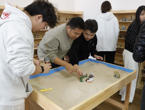 活动中,心理健康中心教师以“认识心理资源,学会自我关怀”为主题,带领员工依次参观了接待咨询室、情绪疏导室、团体辅导室及放松训练室。在情绪疏导室,教师详细介绍了沙盘游戏、情绪宣泄设备的使用方法,“通过沙具摆放梳理内心困惑,借助安全宣泄释放压力,这些都是帮助大家调节情绪的实用方式”;在放松训练室,员工们现场体验了生物反馈放松椅、正念冥想设备,亲身感受专业工具带来的身心舒缓效果。