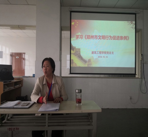根据公司的工作安排,2018年10月16日下午3:30,在E311best365足球官网全体专兼职教师和行政人员在总支书记马春燕的带领下,认真学习了郑州市文明行为促进条例。