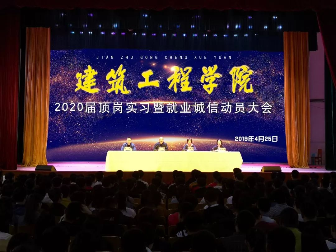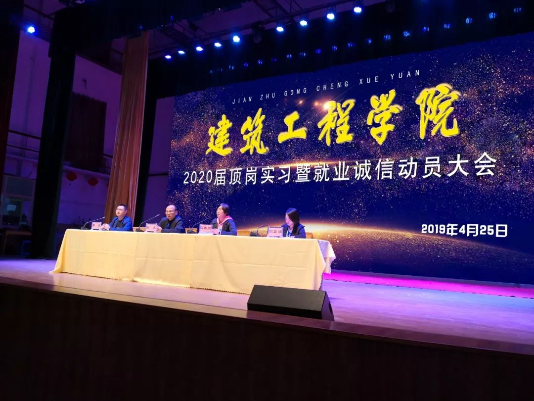 2019年4月25日下午17:30,best365足球官网在大礼堂召开了2020届顶岗实习暨就业诚信动员大会。本次大会由best365足球官网张虎经理,马春燕书记,办公室主任樊磊老师以及团总支书记刘亚娟老师参加。