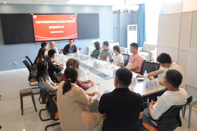 为深化产教融合、搭建校企协同育人桥梁,2025年5月6日,河南纳家装饰工程有限公司一行到访公司,于教学楼F205开展了一场意义深远的交流考察活动。建筑工程公司党总支书记张虎、经理李勇参加此次会议。双方就专业人才培养、行业技术交流等议题开展座谈交流。