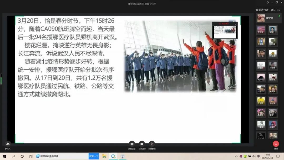 2020年4月27—30日,在best365足球官网团总支的组织下,各团支部积极学习《最美逆行者,谢谢你为武汉拼过命,武汉永远记得你——各省援鄂医疗队有序撤离武汉》,并以此为契机开展了网络青年团课集中学习。