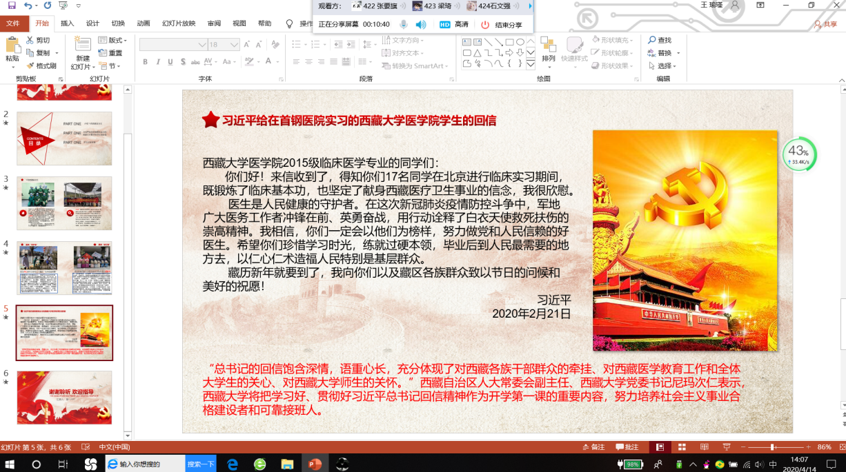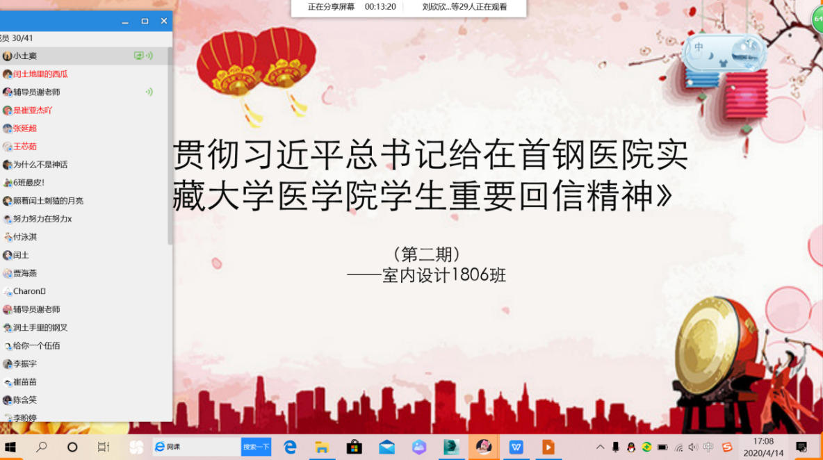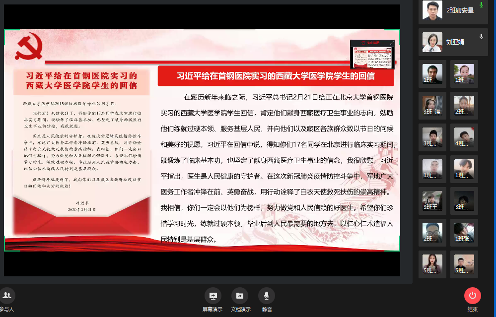 2020年4月13—16日,在best365足球官网团总支的组织下,各团支部积极学习《习近平总书记给在北京大学首钢医院实习的西藏大学医公司员工的回信》,并以此为契机开展了网络青年团课集中学习。