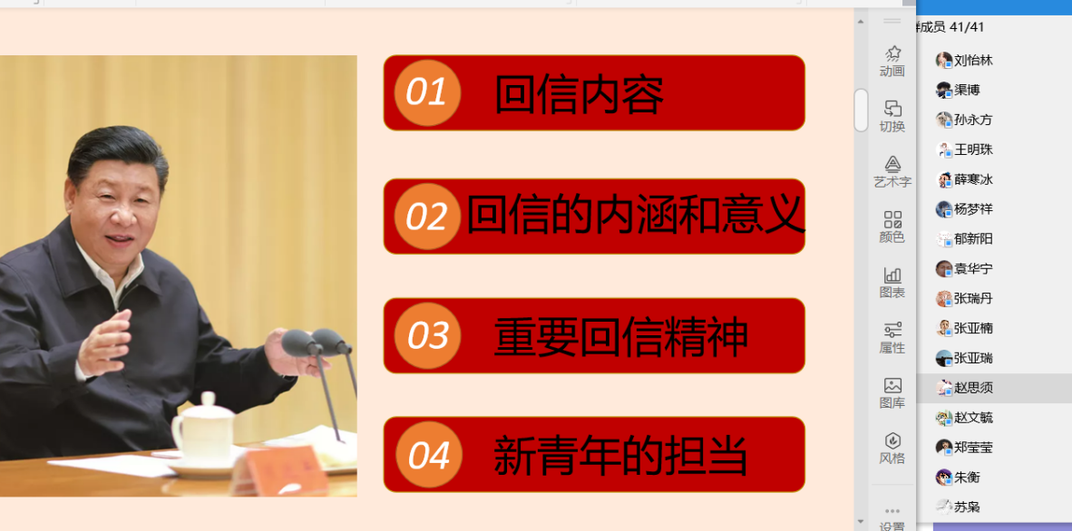 各团支部利用线上网络视频会议,线上集体讨论等学习方式,组织团员青年认真学习习近平总书记重要回信精神,使团员青年进一步加深对习近平总书记回信的重大意义和精神实质的领悟,对促进全体团员牢固树立“四个意识”、坚定“四个自信”、坚决做到“两个维护”具有重要意义。