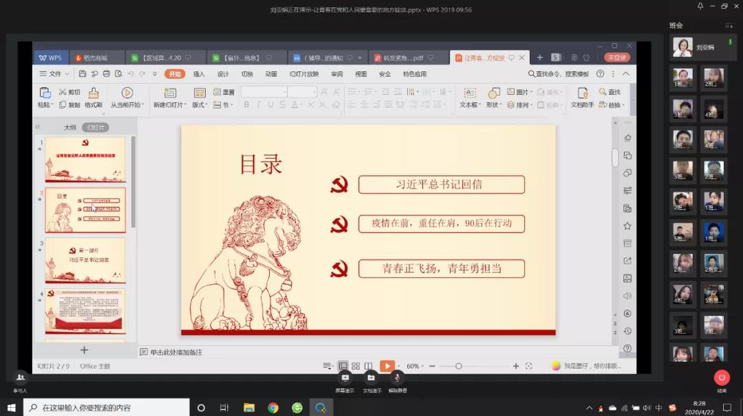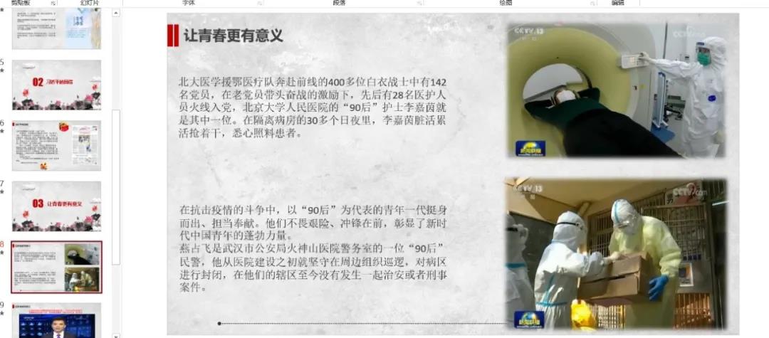 各团支部利用线上网络视频会议,线上集体讨论等学习方式,引导广大青年深入学习以援鄂青年为榜样,同时应做到“四学三做”:要学习抗疫一线人员的爱党爱国精神、无私奉献精神、团结协作精神和勇于担当精神,要做一个爱国有志、有理想有思想、有责任有担当的青年。认真学习习近平总书记给北京大学援鄂医疗队全体‘90后’党员回信,进一步明确当代老员工身上所肩负的重担,并鼓励大家时刻以一名优秀团员的标准来要求自己。