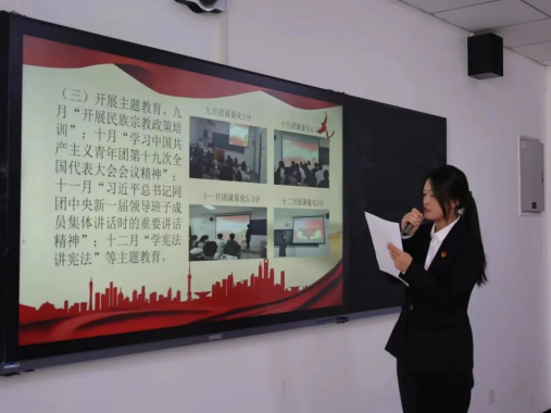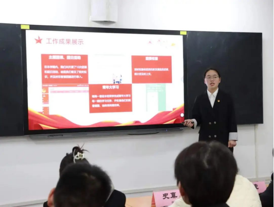 王莹表示在今后的工作中,她希望各团支部能始终牢记初心使命,提高政治站位,加强思想建设工作;发挥专业优势,开展形式多样的主题团日活动,提升团员的积极性和参与度。