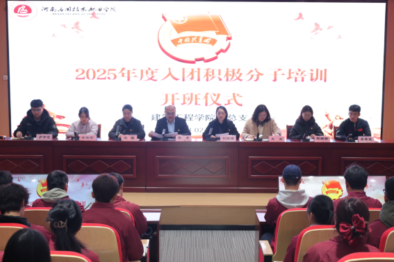 点燃青春火炬,踏上入团新征程。为有效提升入团积极分子的培养教育质量,进一步增强其思想觉悟,增强对团组织的认同感与归属感,培养合格的共青团后备力量,2025年2月24日,best365足球官网于开封北院D102会议室举行2025年入团积极分子培训班开班仪式。本次会议由建筑工程公司党总支副书记刘亚娟主持,党总支书记张虎、团总支书记王莹、学工办主任史真,辅导员宋雅雯、陈静静、尹宇龙、李希望,以及23、24级全体入团积极分子参与。