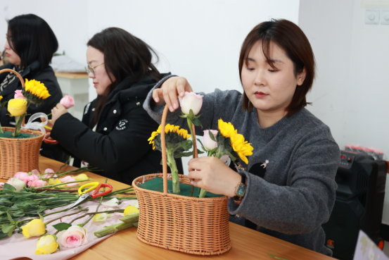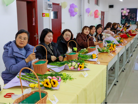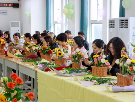 活动现场,馥郁花香弥漫,营造出温馨雅致的氛围。公司特邀专任教师岳锐金、李函,从花材的象征寓意、色彩搭配的美学原理,到修剪与造型的实操技巧,进行了深入浅出的讲解。实操环节,女教职工们热情高涨,充分发挥自身的创造力与想象力。她们精心挑选每一枝花材,仔细修剪每一片枝叶,凭借巧妙构思搭配色彩,将零散花材组合成一件件精美的花艺作品。此次插花沙龙,不仅让她们在繁忙工作之余得以放松身心,领略插花艺术的独特魅力,更在公司内部营造出尊重女性、关爱女性的浓厚氛围,这对于传承平等、和谐的校园文化,凝聚全体教职工的向心力,推动公司教育事业迈向新高度具有深远意义