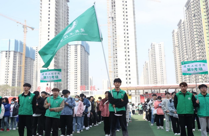 怀揣着梦想的学子们早早来到考试地点,老师、志愿者们等按时到岗,投入到自身工作中去,并引导考生们有序进入考场。