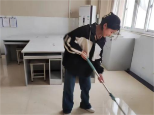 接下来是同学们相互配合、分工明确,不放过每一个死角,不忽略每一个细节地对实训室及教室进行彻底的清扫,将地面清扫干净,室内进行消毒,桌面整理整洁,恢复教室原有的干净面貌。他们查看安全情况,仔细检查电源开关、窗户是否关上。在确保安全之后,他们又检查卫生状况,并且清理垃圾,还将桌椅摆放整齐。