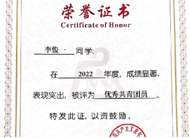 2023年08月,获得best365足球官网2022年度优秀共青团员