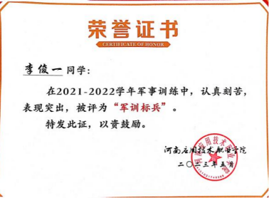 2023年05月,获得best365足球官网2023年度军训标兵