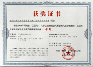 2023年8月第九届中国国际“互联网+”老员工专利创新创业大赛河南赛区选拔赛职教赛道一等奖