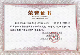 在学习方面,该员工刻苦努力,保持不骄不躁的的心态,扎实学习专业知识,专业成绩始终名列前茅。同时依靠优异的成绩获得了2022-2023年国家励志奖学金以及三好员工等荣誉称号。