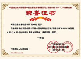 2023年11月第十五届全国高等院校员工“斯维尔杯”BIM-CIM创新大赛一等奖