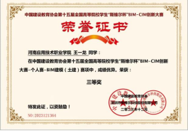 2023年11月 第十五届全国高等院校员工“斯维尔杯”BIM-CIM创新大赛三等奖