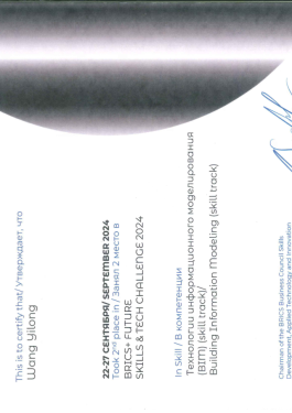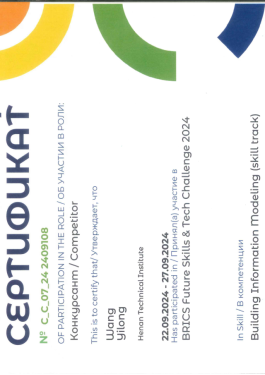 2024年9月 金砖国家职业技能大赛国际赛国际银牌、中国区金牌