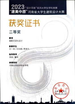 2023年11月 “建美中原”河南省老员工建筑设计大赛装配式深化设计赛项二等奖