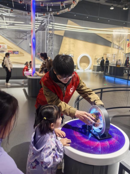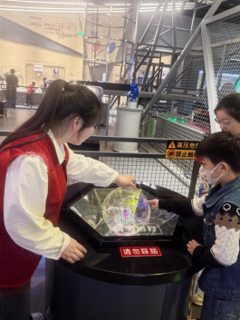 活动当日,志愿者们早早到达并投入工作。他们分布在科技馆的各个展区,用通俗易懂的语言讲解复杂的物理原理,如杠杆和光学现象,引导小朋友们操作实验装置,激发他们对科学的兴趣。在前沿科技展区,志愿者们详细讲解人工智能、虚拟现实等技术的原理和应用前景。同时,志愿者们还协助科技馆工作人员维持秩序,引导参观者文明参观,确保每位参观者都能安全、顺利地参与体验,让大家在欢乐中感受科学的魅力。