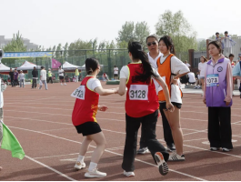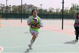 口哨声一响,运动员们如同离弦的箭一样,队友之间配合默契,他们抱着球迈着矫健的步伐奋力奔向终点。用速度点燃希望,用默契铸就辉煌。