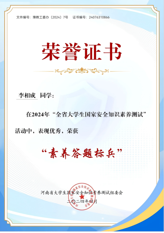 李相成,男,汉族,2001年5月出生,河南商丘人,中